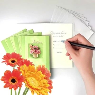 Set of 5 Invitation Cards with Pink Flowers Bouquet White Envelopes 9 x 14 cm Text We are pleased to invite you for the (date) at (time) address Party, Birthday Women IV5002 S6