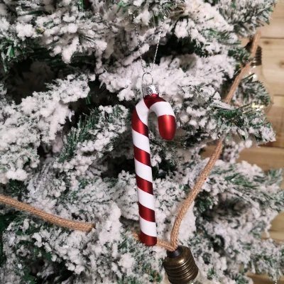 General description Deck the halls this Christmas with this set of attractive stripe candy cane sweet tree decorations. This hanging decoration will make a perfect addition to any room and is suitable to be hung around your indoor space, whether on the Christmas tree, a wreath, or a Christmas garland. With a red and white stripe design, these decorations are made from glass and are sure to bring the festive spirit to family and visitors this Christmas time. The sweet decoration features a silver hanging loop allowing you to place it anywhere you like. Technical specifications Length: 12 cm Width: 4 cm