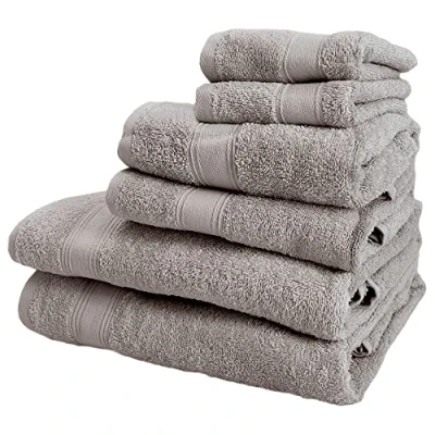 Set of 6 Bath Towels: 2 Courtesy Towels 30 x 50 cm; Basin 90 Shower 70 140 cm 450 g/m2 100% Taupe Cotton