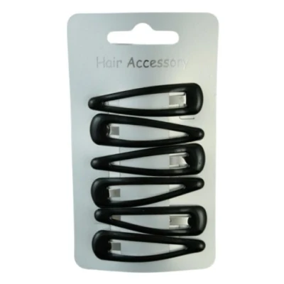 Set of 6 Black Hair Clips Snap Bendies Sleepies 5cm (2")