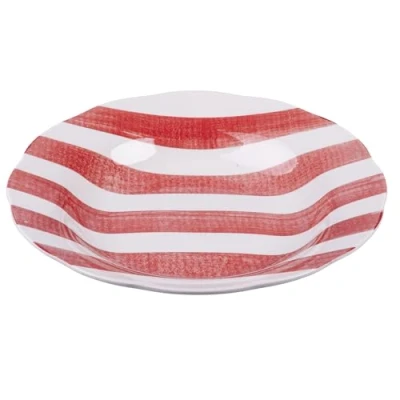 Versilia soup dish; porcelain Polished finish; Scalloped edge Striped design; Soup plate: Ø 22 x h. 4 cm Dishwasher safe; Microwave safe Colour: red/white