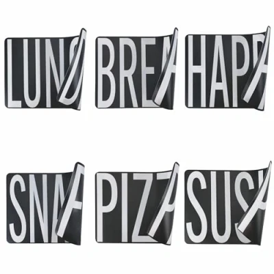 Big is More placemat made of plastic (PP) double-sided decoration with lettering Measurements: L. 45 x D 30 x H 0 cm Available in 6 designs: Happy/Hour, Break/Fast, Lunch/Dinner, Food/Snack, Pizza/Pasta, Poké/Sushi Easy to clean with a damp cloth Big is More, Plastic (PP) Placemat Double-sided, with lettering design Size: L 45 x D 30 x H 0.05 cm; Available in 6 designs: Happy/Hour, Break/Fast, Lunch/Dinner, Food/Snack, Pizza/Pasta, Poké/Sushi Easy to clean with a damp cloth