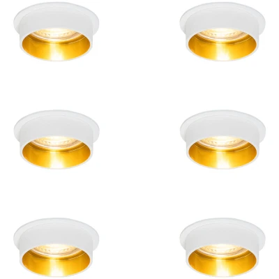 Set of 6 Modern Recessed Spotlights White with Gold Interior Insta