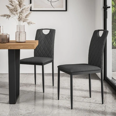 Set Of 6 Monza Fabric Dining Chair Modern Padded Seat Metal Legs Kitchen (Charcoal)