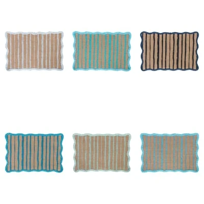 Set of 6 Rectangular Jute and Paper Placemats, 43.5 x 29 cm, Shades Ocean