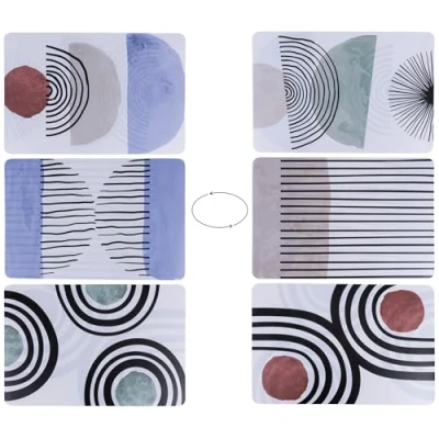 Venice Lido Modern placemat made of plastic (PP) Double-sided decoration. Size: L. 45 x D 30 x H 0.1 cm Easy to clean with a damp cloth Available in 3 assorted designs Venice Lido Modern placemat. Available in 3 assorted designs Made of plastic (PP) Reversible design Size: L 45 x D 30 x H 0 cm