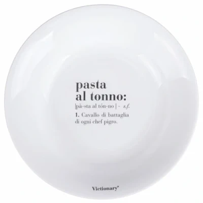 Victionary round deep plate in opal glass Dimensions: Ø 22 cm with Victionary definition of tuna pasta Microwave safe Dishwasher safe Colour: white Victionary round deep plate, opal glass Dimensions: diameter 22 cm; with Victionary definition of tuna pasta Microwave safe; Dishwasher safe Colour: white