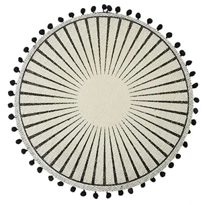 Black Jute Round Placemat Circular shape with striped decoration With black pom poms Measurements: 38 cm Color: beige and black
