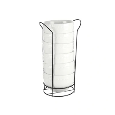 Discover the modern set of 6 white porcelain bowls 800 ml with stand designed by San Ignacio in collaboration with VESSIA, to bring style and functionality to your kitchen. Set of 6 white porcelain bowls 800 ml, perfect for serving your meals in an elegant way. Includes a practical stand to keep the bowls always organized and at hand in your kitchen. Made of high quality porcelain, ensuring strength and durability. Dishwasher and microwave safe making them ideal for everyday use in your home.