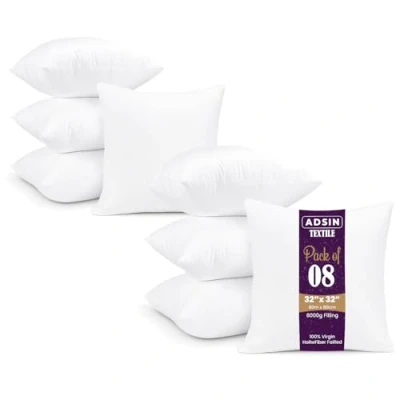 Set of 8 80cm x Hollowfibre Cushion New White Pad Inner Stuffer Pillow Polyester Insert Square Hypoallergenic (Pack 32" 32")