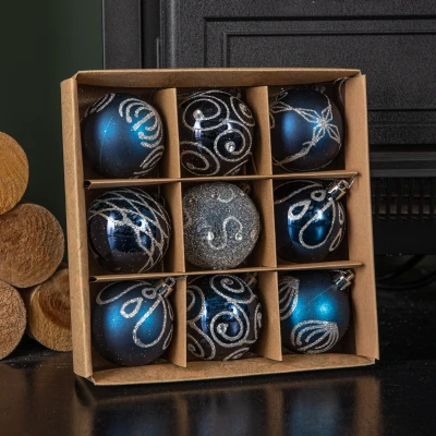 Set of 9 Midnight Blue Christmas tree baubles, Plastic, 6cm by Premier