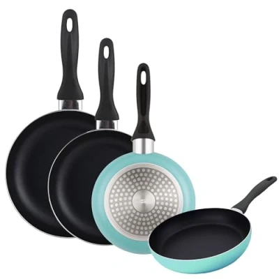 Set of Frying Pans Ø16 Ø20 Ø24 and Ø28 cm Induction Non Stick Pressed Aluminium in Sky Blue