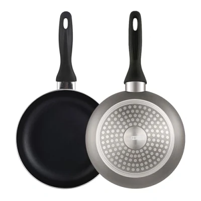 Because we all have our favorite pan size, we have that set of non-stick pans in pressed aluminium, with an elegant colour coated exterior, resistant to high temperatures, and non-stick interior in black. Pressed aluminum has high capacities to capture and distribute heat efficiently, resulting in energy savings. They have handles that remain always cool, to ensure safety while cooking, ergonomically shaped, comfortable and manageable. Induction pans: bottoms suitable for all types of hobs, including induction. Dimensions: pan set: 2 pieces Ø28 x 5 cm
