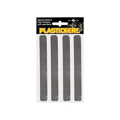 Super refractive stickers, plastic coated with a soft and thick vinyl. Protects from small abrasions. High-visibility increasing safety. Set of 2 pieces. Dimensions: 13,2 x 9,5 cm.