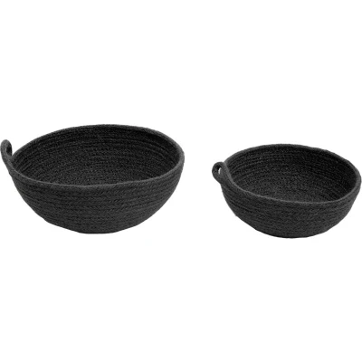 ManoManoGeneral description Hand-woven from natural jute fibres and finished in black, this set of two baskets is versatile and adds a rustic accent to home décor. The woven braid pattern elevates a pop of decorative texture and complements minimal decors.