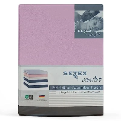 Flannelette fitted sheet for 180 x 200 cm mattresses, comfortable to put on and non-slip hold thanks to fitted sheet with elastic, suitable for mattresses up to 23 cm high Optimum hygiene protection of the mattress against sweat and moisture thanks to durable, moisture-absorbing twill weave - for longer life mattresses, not waterproof Temperature-regulating and skin-friendly thanks to 100% breathable cotton, washable up to 60 degrees - perfect fit after the first wash Quality made in Germany: tested for harmful substances - Standard 100 by Oeko-Tex (certified No.: 07.0.49905 / testing institute: Hohenstein) Box contents: 1 SETEX flannelette fitted sheet, size: 180 x 200 cm, material: 100% cotton, colour: lilac