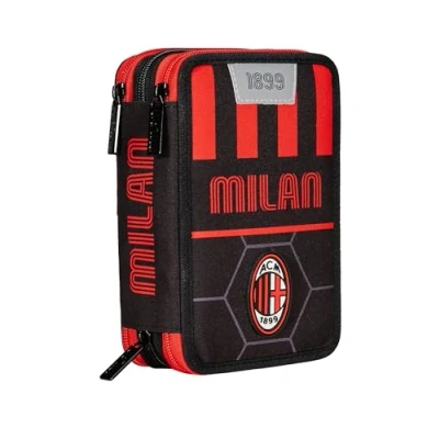 SEVEN A.C. Milan Football School Pencil Case with 3 Compartments Path of Victory, Red Black Multi Compartment Pen Holder Pencils, Pens and Colours, Accessories Backpack, Backpack