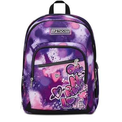 Seven Adavanced Detach School Backpack, Purple, Bubble Street, Double Compartment with Detachable Pocket Use PC Pocket, Bottle Medium and Upper Girls