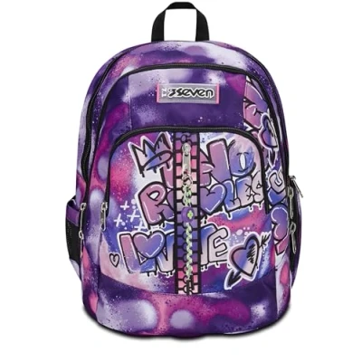 SEVEN Advanced School Backpack, Purple, Bubble Street, Double Compartment Backpack with USB Support, PC or Tablet Pocket, Bottle Holder and Organizer, for Middle High Schools,