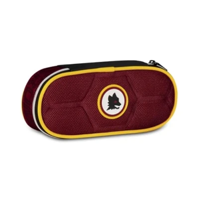 Seven AS Roma Round Plus Football School Pencil Case, red, Oval Case with Elastic Bands and Pocket for Pens, Pencils Accessories, Middle High School, Boy, Modern