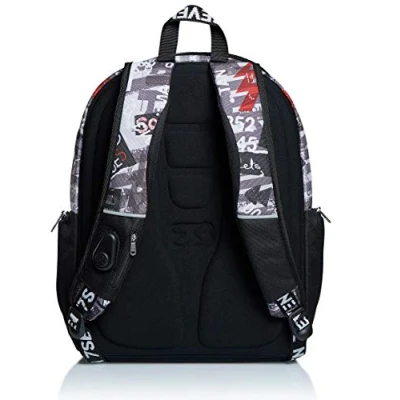 Seven Backpack, Advanced, URBAN ROCK Knapsack Padded School Bag, Book One Size For Teen, Girls&Boys, Large Capacity, School, Sport & Free Time, Laptop Sleeve, Italian Design, black/white