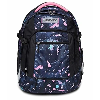 Seven Backpack, UPDOWN TWICE SPLASHY LILAC Eco friendly Ergonomic Knapsack, For Teen Girls& Boys School, Sport, Free Time, with Side Pockets, many Compartments, Shoulder Straps Adjustment System