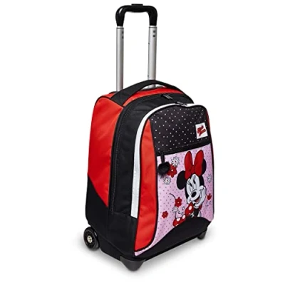 Dimensions: 36.5x50x26 cm; capacity: 32 lt Shoulder straps: padded and retractable when used as a trolley.backrest: padded and covered in fabric Pockets: front zip pocket Features: double compartment trolley with fixed trolley and front pocket, telescopic double rod bar with two adjustments, rigid preformed reinforced and integrated bottom, 75 mm wheels, contrasting profiles, custom zip puller Fabric: polyester Closure type: zip