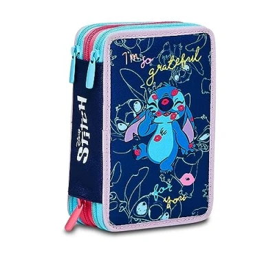 Dimensions: 12.5 x 19.7 x 7 cm Features: Screen printed logo on the back. Inner lining and contrasting elastics. Pockets: 3 zipped compartments opening. CONTENT 43 PIECES: 18 colour lead pencils 3.8 Colour Code, 18 washable colour code markers, 1 blue erasable pen, 1 colour code red ballpoint pen, 1 colour code graphite pencil, 1 colour code eraser, 1 2-hole barrel sharpener, 1 transparent ruler, 1 metal scissors with plastic handle Fabric: Printed polyester.