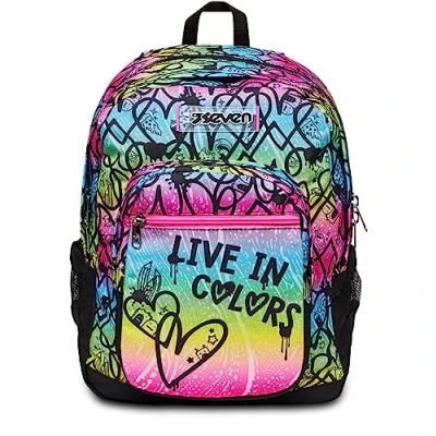 SEVEN Colour Expression Freethink School Backpack Double Compartment Bottle Pocket, multi coloured, M,