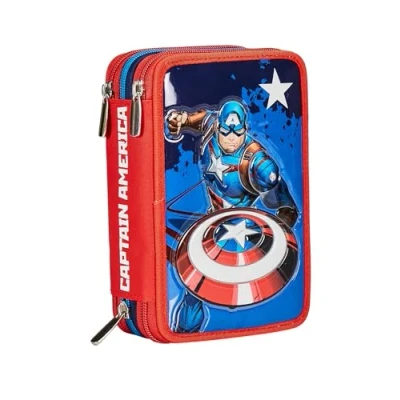 SEVEN Disney Captain America Legend Avange Pencil Case with 3 Compartments, Blue Red Multi Compartment Pencils, Pens and Colours, Accessories Backpack, School Backpack Children's