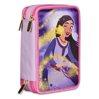 Seven Disney School Pencil Case with 3 Compartments, Wish Strong Heart, Bright Spirit, Multicolour Multi Compartment Pen Holder Pencils, Pens and Colours, Coloured, Taglia Unica, Modern