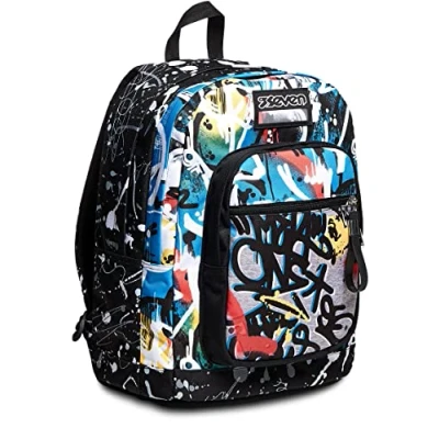 Seven Fit Backpack for School, University & Leisure, Spacious School Bag Teenagers, Girls and Boys, Colourful Practical, Italian Design, Black Dark, standard size, Modern