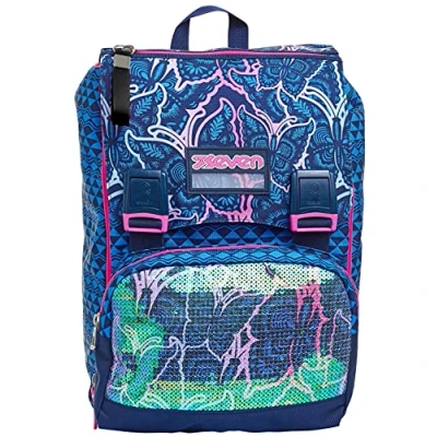 Seven Foldable Backpack, Graceful Girl, Blue, Double Compartment, School and Travel