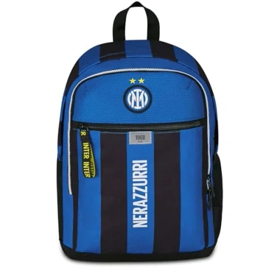 Dimensions: 28.5 x 42 x 23 cm - capacity: 26 litres Backrest: Padded and covered with fabric. Shoulder straps: padded and covered with fabric. Double compartment backpack with front pocket. Side mesh water bottle pocket. Rubber logo patch Screen printed stars. Screen printed lettering Reflective label. Custom pull with jacquard ribbon. Contrast two-tone zip Fabric: Polyester The Inter double compartment backpack is the perfect choice for children who are looking for a roomy, comfortable backpack of the team of their heart! Ideal for primary and middle school!