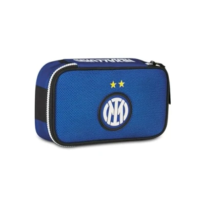Seven Inter Quick Case School Case, Blue, Pen Holder Complete with Pens, Pencils, Colours, Elementary and Middle School, Children, Football, Modern