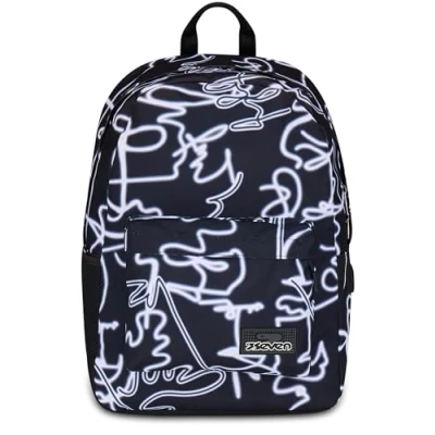 Seven Ischoolpack with Integrated Powerbank and USB Backpack Unisex Children Teenagers, Black, Unica, modern