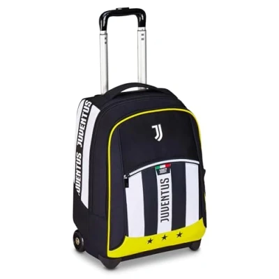 Seven Juventus Big Trolley School Fixed, Black and White, 2 in 1, Dual Use, Backpack, Elementary School, Child, Football, Black, Taglia unica, Casual