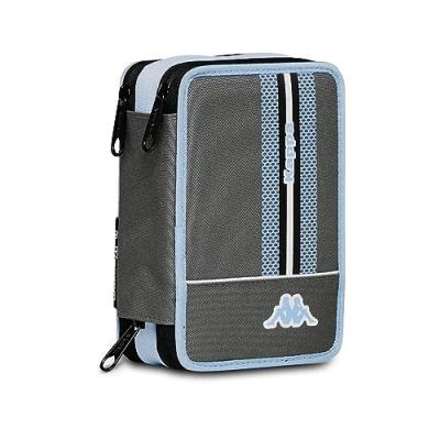 Seven Kappa School Pencil Case with 3 Compartments Multicoloured, Pen Holder, Teenagers, Children Complete Pencils, Pens, Markers …, Grey, Taglia Unica,