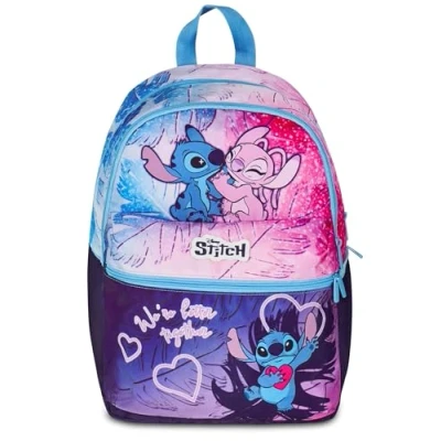Seven Lilo & Stitch Double Compartment Backpack, blue, Front Zip Pocket and Bottle Pocket, Girls, Elementary School, Taglia unica, Casual