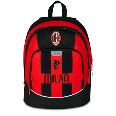 Seven Milan Advanced School Backpack, Red and Black, Football Team, Double Compartment Bottle Pocket, 29 L, Elementary School, Child red, Taglia unica, Casual