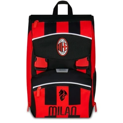 Seven Milan Expandable Double Compartment Backpack, Red and Black, Football Team, Maxi Capacity, Preformed Backrest, Child, Elementary School, red, Taglia unica, Casual