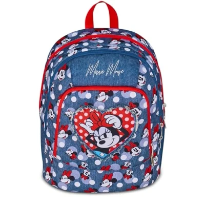 Seven Minnie Backpack School Double Compartment, Blue, Bottle Pocket, 29 L, Elementary School, Girls, Blue Denim, Blu Casual