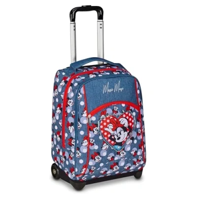Seven Minnie Big School Trolley Set, Denim Blue, 2 in 1, Double Use, and Backpack, Elementary School, Girl, Blue Denim, Blu Casual