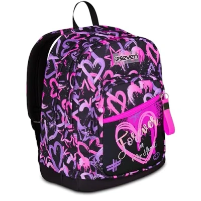 Dimensions: 33 x 44 x 26 cm; Capacity: 32 litres. Backrest: Pre-shaped with integrated base. Shoulder straps: Padded shoulder straps covered in fabric and mesh with anatomically shaped shape. SUPER CAPACITY - Backpack with double compartments to better organize books, accessories and more, and side mesh pocket for a bottle holder always at hand. Comfort and stability – Pre-shaped backrest with integrated bottom for comfortable and stable transport, protecting the contents in every movement. Great for any occasion - Perfect for school, sports or leisure, it offers space, practicality and durability to face every day in style! Fabric: Polyester The Seven New Fit backpack is perfect for every day! With a capacity of 32 litres and the double compartment, it allows you to better organize everything you need for school and leisure. The design, the pre-shaped back and the padded shoulder straps ensure maximum comfort