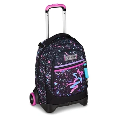 Seven New Tech School Trolley Black, 3 in 1, Triple Use, Backpack with Detachable and Crossover System, Travel, Girl, Taglia unica, modern