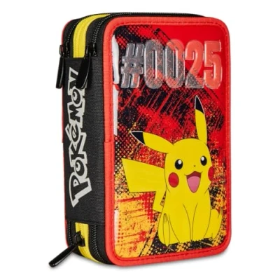 Dimensions: 12.5 x 19.8 x 7 cm Features: 3 compartment opening with zip. Internal elastic pencil holders in contrasting colour. Screen printed logo Fabric: Polyester Printed Perfect for Pokemonfans, durable and practical for everyday use