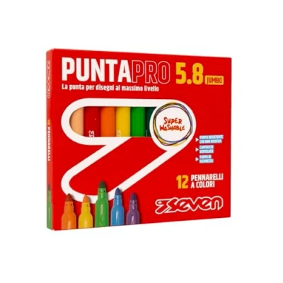 12 x Seven PuntaPro 5.8 Jumbo Colour Markers Super washable, vented cap, safety cap and durable non-fall tip.