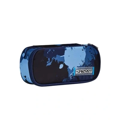 Seven Round Plus School Pen Holder, Blue, Inky Shadow, Oval Pouch with Inner Pocket and Elastic Holders, Backpack Accessories, Elementary, Medium, Top, Child Boy, Taglia Unica, Modern