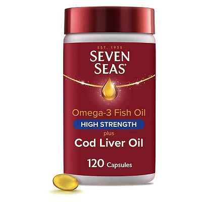 Boots45 Advantage card points. Seven Seas Omega-3 Fish Oil High Strength Plus Cod Liver Oil & Vitamin D, 120 Capsules, 4 Months Supply FREE Delivery on orders over 45 GBP.