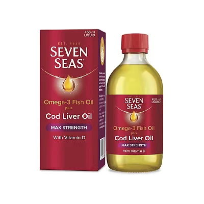 Boots72 Advantage card points. Seven Seas Omega-3 Fish Oil Plus Cod Liver Oil MAX STRENGTH 450ml liquid. With Vitamins D And E FREE Delivery on orders over 45 GBP.